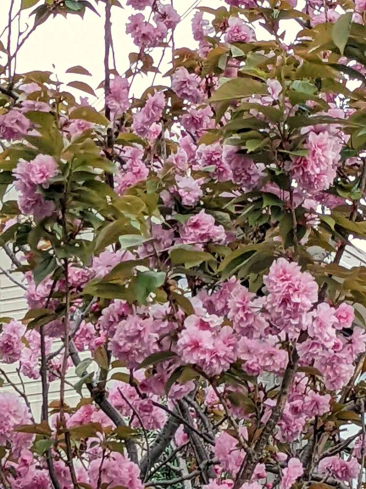 こんばんは。この八重🌸は今日通ったら散り始めてました。