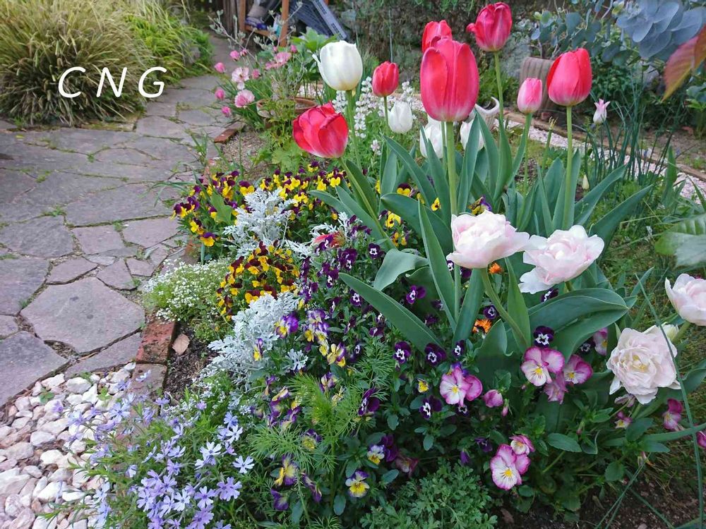 花壇の様子です。春の陽気でもりもりです。