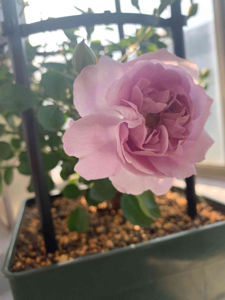 初めて育てているバラなので開花がとても嬉しかったです。淡いパープルがまた可愛らしいのです💜蕾が開花していくのが楽しみです