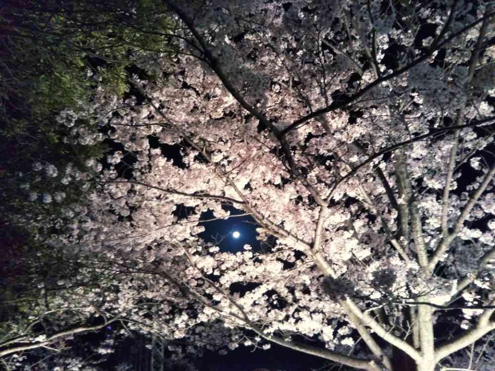 さくらの隙間から満月が顔を覗かせました