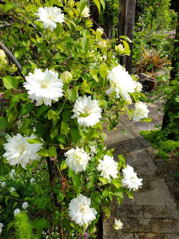 良くある大輪で一重のクレマチスはパテンスで 早咲きが多いと ザッとパッとの考えでした🤭💦