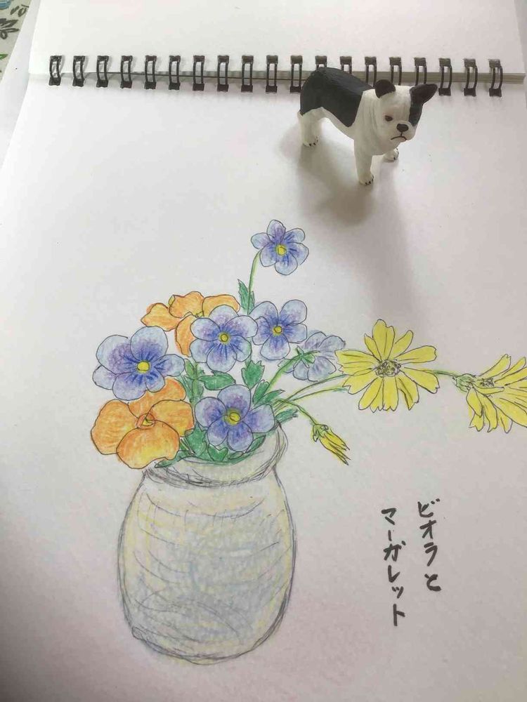 マーガレットも 添えて 、色鉛筆で 塗ってみました ❣️