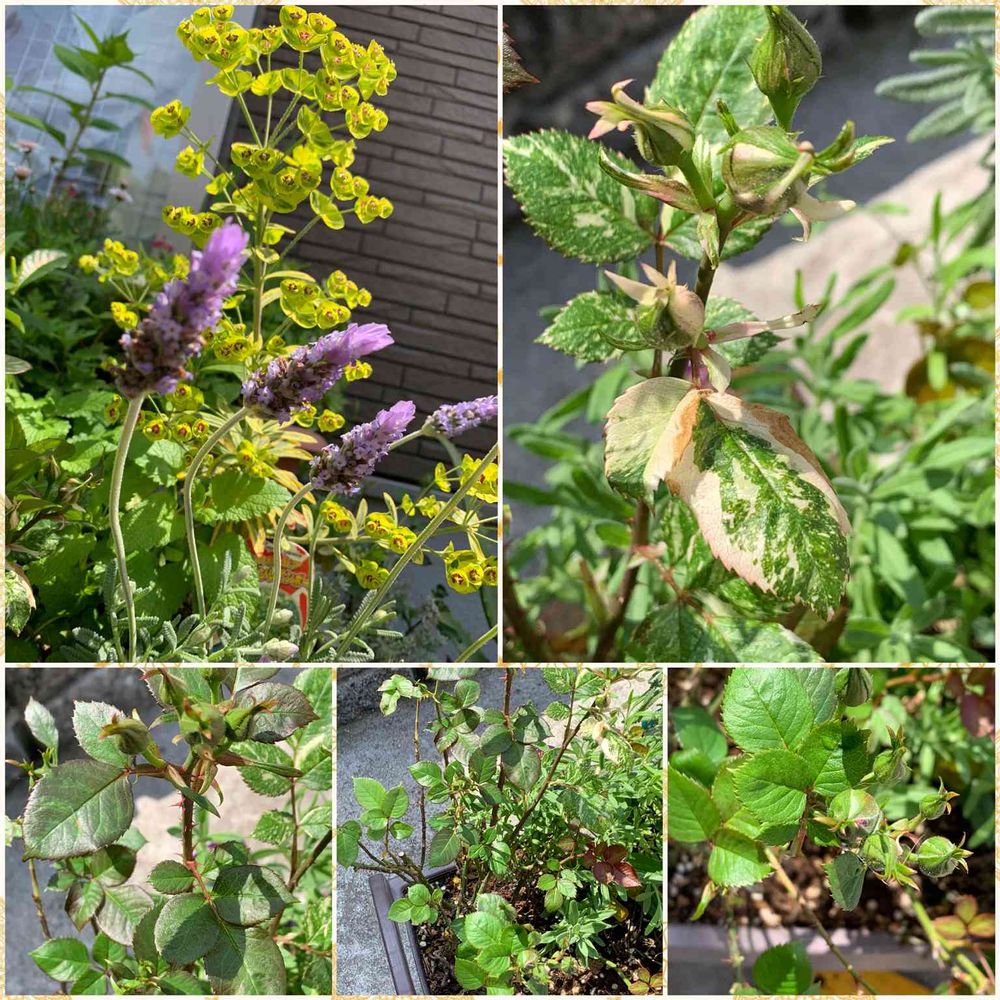 さっきの投稿は紫陽花だったんですが今度は同じプランターに葉の質感が違う薔薇🌹です3種類