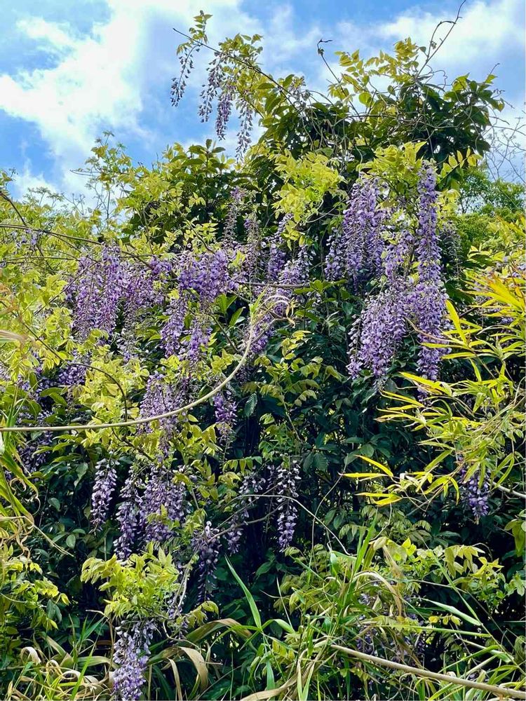 庭や公園などで育てられているフジと比べると、花房の一つ一つが小さくて素朴な感じなのですが、これだけ咲くとやはり迫力がありますね🤗
