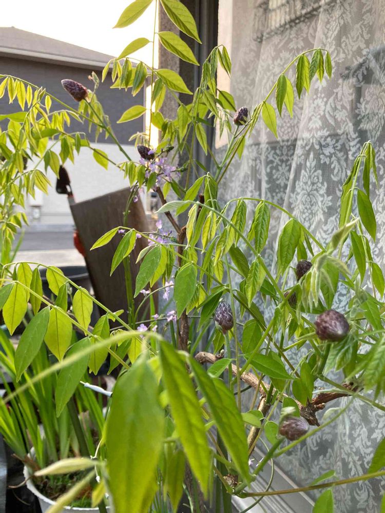 アメリカフジが咲いたのかと思ったら、雑草をそのままにしていたマツバウンランで、フジはまだツボミでした。