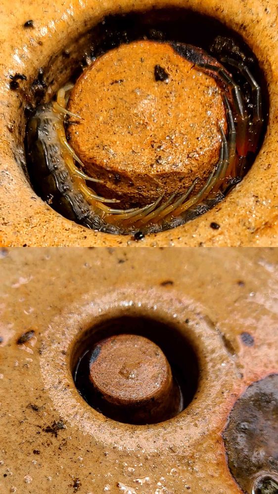 鉢敷きのくぼみにムカデが😬😖