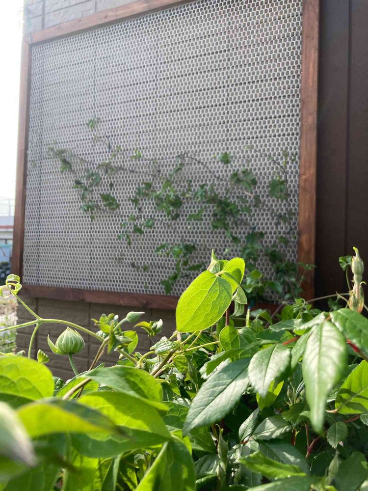 クレマチス用のネットフェンスが欲しくてようやく作りました。外壁にとりつけたので、広範囲でクレマチス同士の共演も出来る様になります✨妄想が膨らみます。