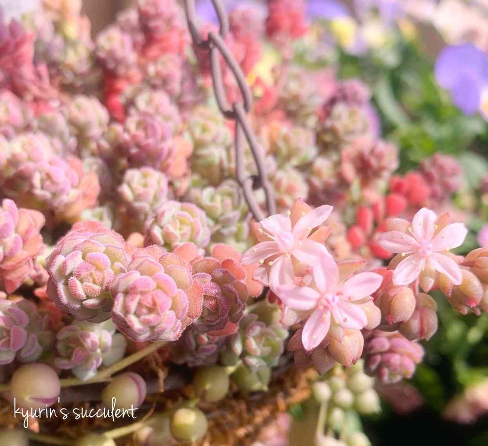 多肉は紅葉が覚めてきたのでピンクを探していたらちょうど🌸咲いていました🥰