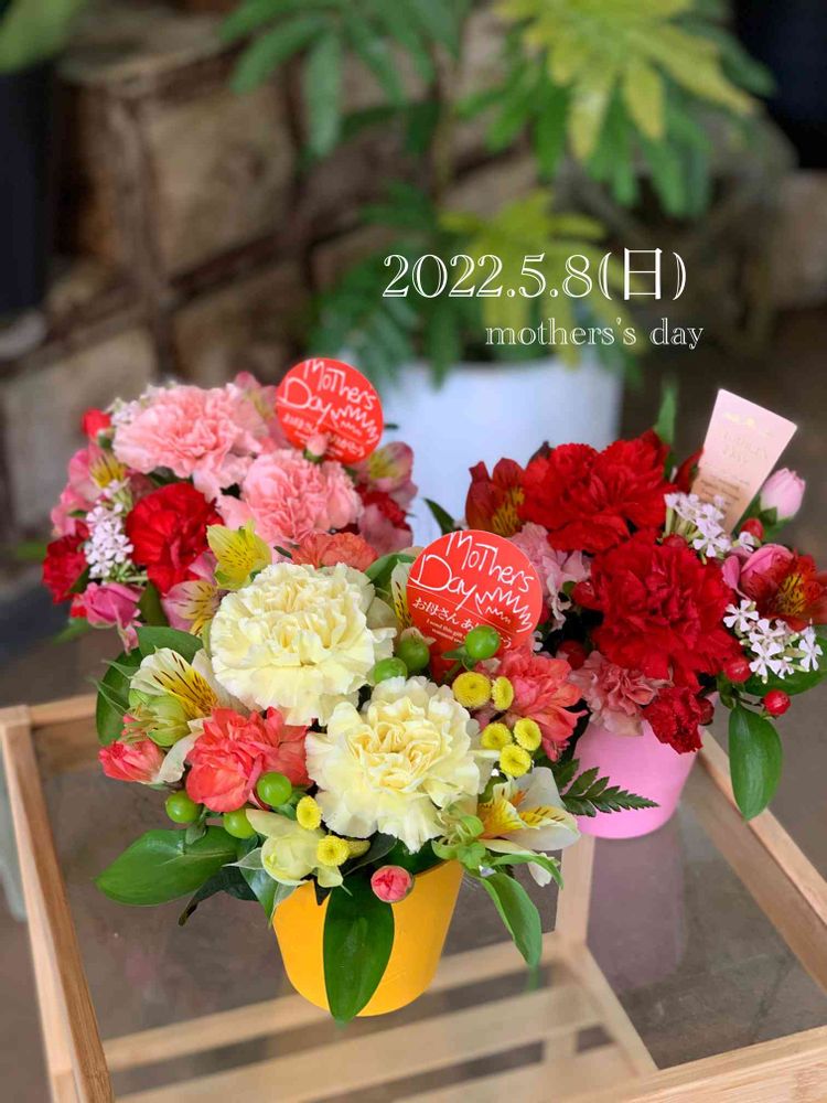 園芸のものはカーネーション・アジサイ・カラー・ラベンダー・ペラルゴニウム・ブーゲンビリア・胡蝶蘭・観葉・多肉植物も人気です!! 贈られた方がご自身で植えられるポット苗をセットにした鉢アレンジも毎年人気のお品です✨ 寄せ植えにした物もイイですね♪ これからたくさんご用意します⑅︎◡̈︎* 事前注文も承っておりますのでご相談ください😊