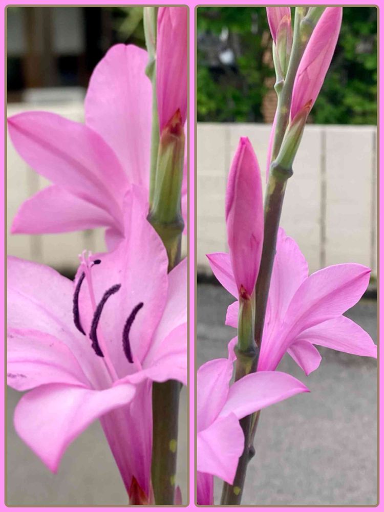 ワトソニア🌸 指宿でも 最近 咲いてきています😊 綺麗な ピンク色のお花で スタイル良く ステキですよね❣️😉