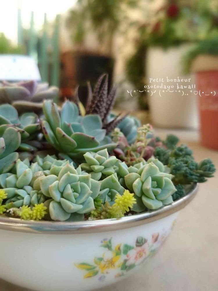 ホーローのボウルに寄せ植えなんて