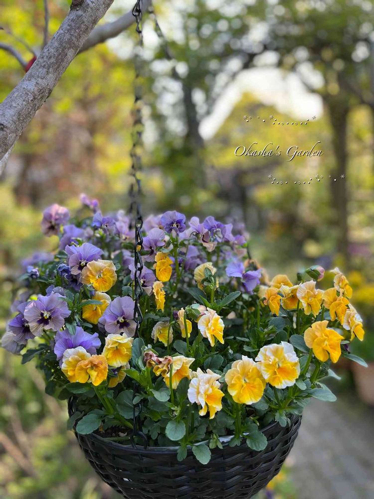 補色のハンギングが作りたくて💜💛