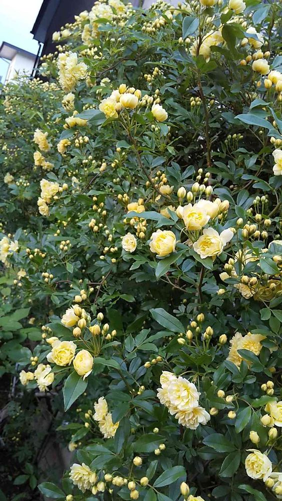 うちのご近所さんで、黄モッコウバラをこんもりと仕立てている人もいるよ~😊😊
