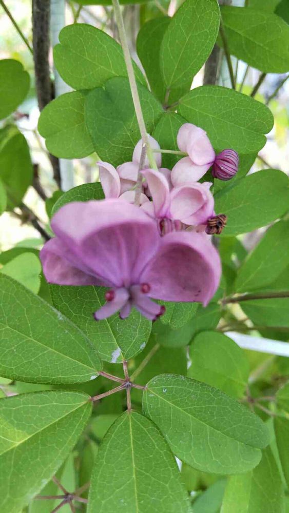 うちの庭に勝手に生えてきてるのは、ミツバアケビ。