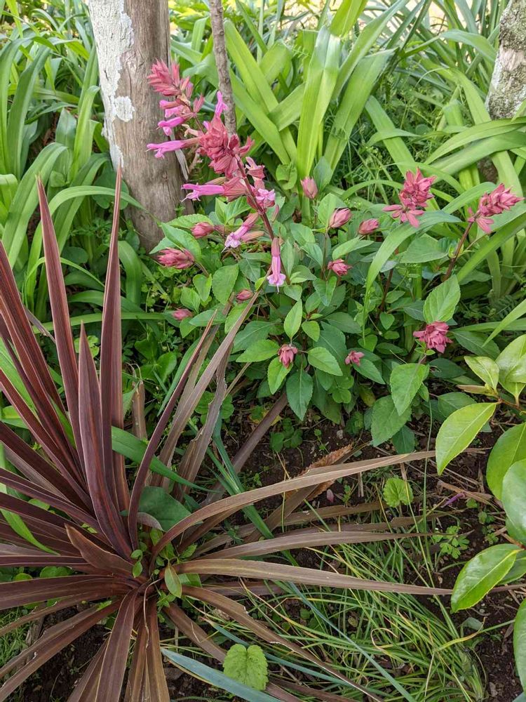 コルネジア&栄養系サルビア。そこらへん夏に花咲く、先には、芍薬がそろそろ咲くかな~モサモサ😅🌿🍃🌱