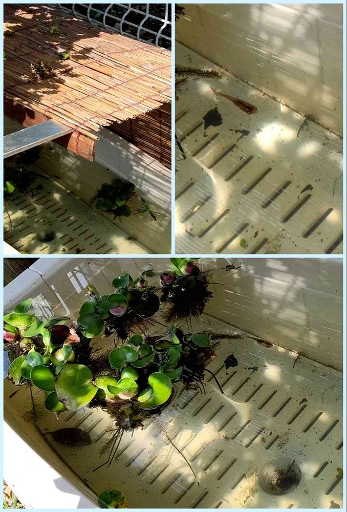 おはようございます。こちらはメダカちゃんの住処です。元は植物用プランターで今年水が抜けるので魔改造されたものです。廂もついていてメダカちゃん快適に過ごせているでしょうか。メダカは繁殖時期です。ホテイ草はメダカ繁殖予定ならばぜひぜひご用意を。よろしければご覧ください。