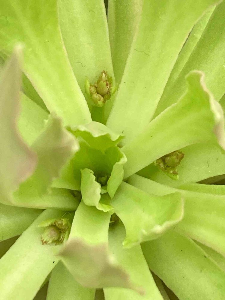 GSの皆さんのレウィシアが綺麗に咲いているのに、我が家のこの子は、新葉が立ち上がって…を繰り返していましたけれど、今朝、蕾らしきものが‼️