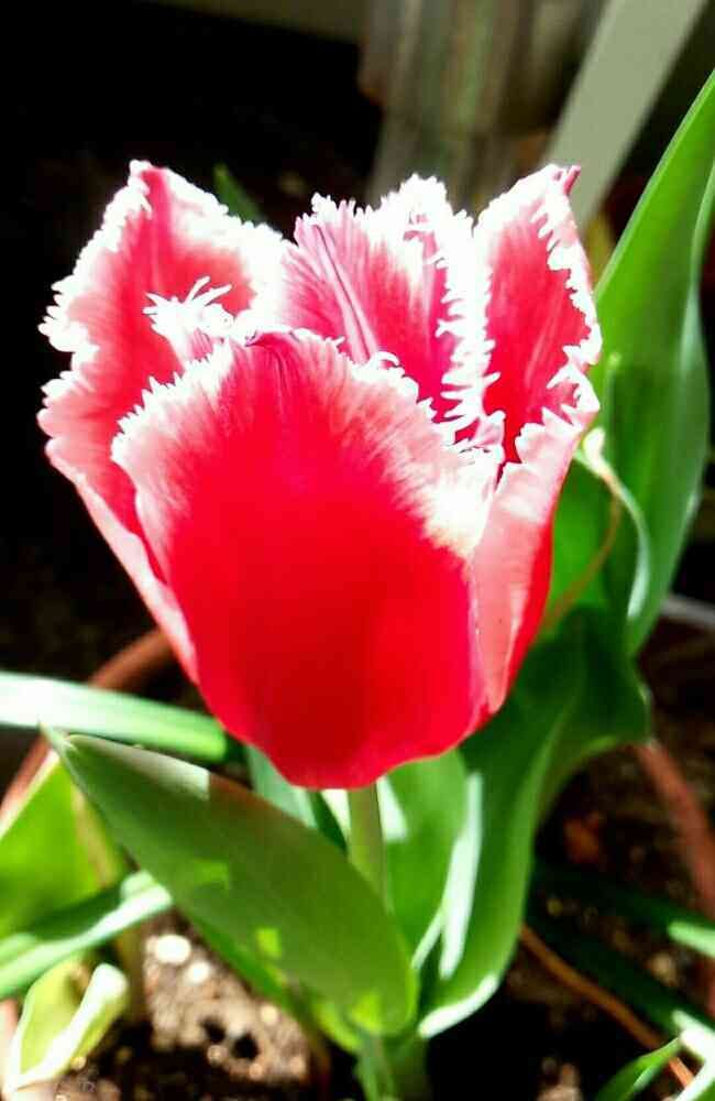 可愛い(๑>ᴗ<๑)チューリップです。縁のギザギザがまたいいね٩(*´◒`*)۶♡