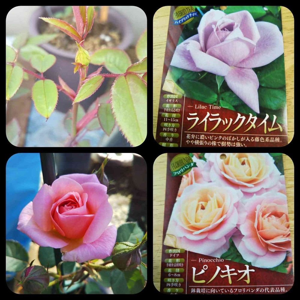 『ライラックタイム』の蕾(写真左上)が出てきました。果たして本当にこの紫色で咲くだろうか?