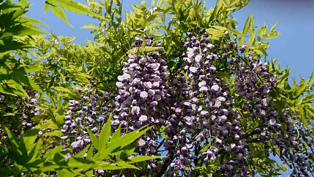 見付けた藤棚の藤に花が咲いたのね💜💜💜
