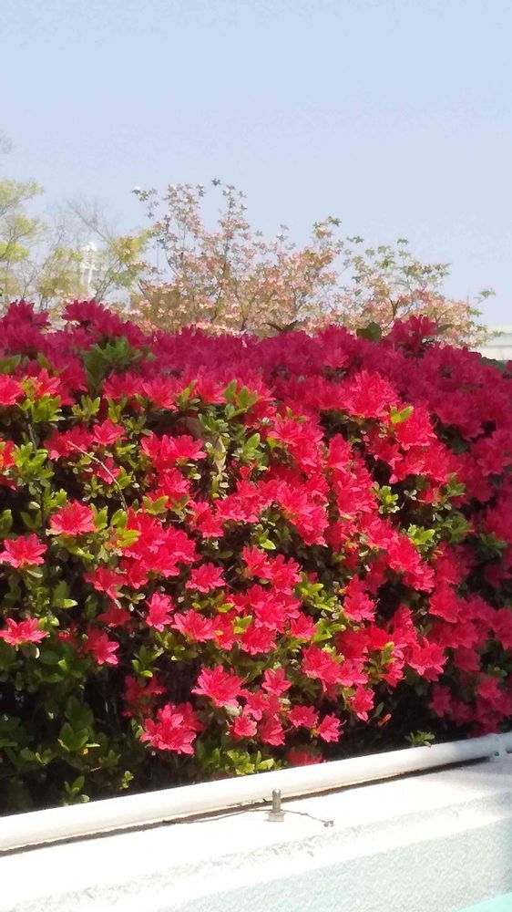 お昼休みに真っ赤な「ミヤマキリシマ」のお花をパチリ!📸♥️🌿🤗