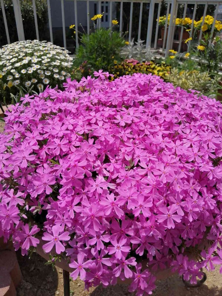 2021年挿し芽した芝桜33cmの丸プランターからあふれる程咲いてくれた!やっぱり株の更新の力は強いです。こんな満開になるのは初めて🎉