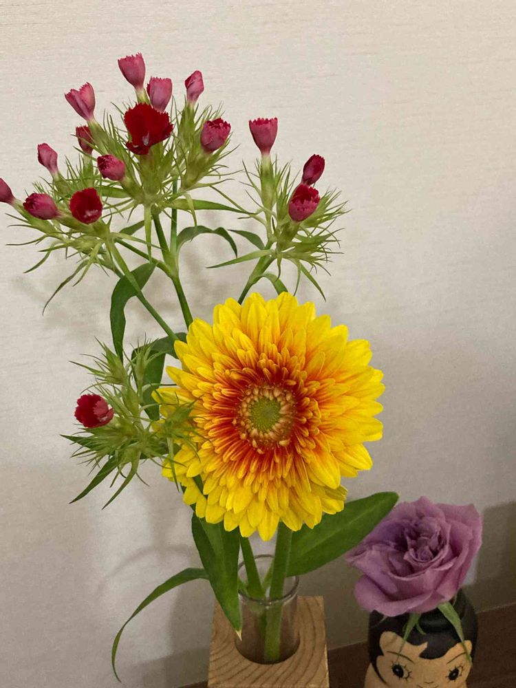 ナデシコとガーベラの色合いに心を打たれました。きれーーい😍😍