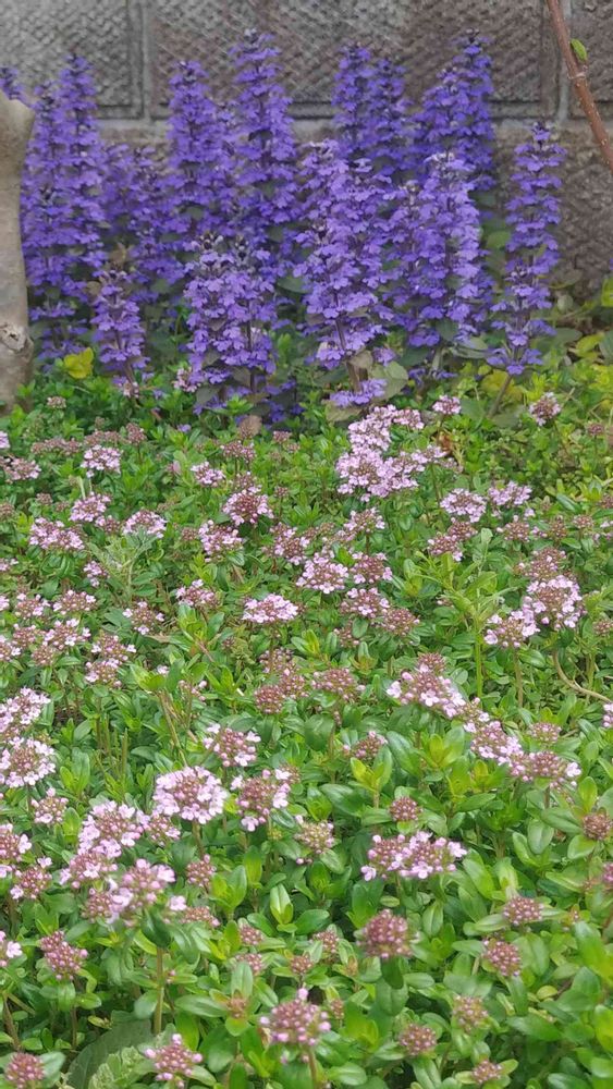 後ろのアジュガも、今年は花穂が高く大きく育ってくれました。
