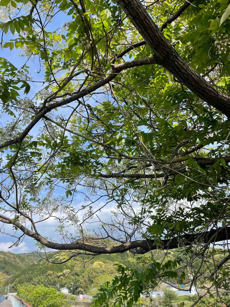 藤の枝からは春の木々のグラデーションが美しいです💚