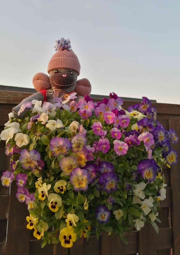 夕陽色に染まって、ハンギングもソクモンちゃんも、黄昏れてますネ💕