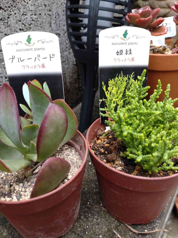 クラッスラの中でもおそらく葉っぱのサイズ最大級のブルーバード👈と最小の姫緑👉