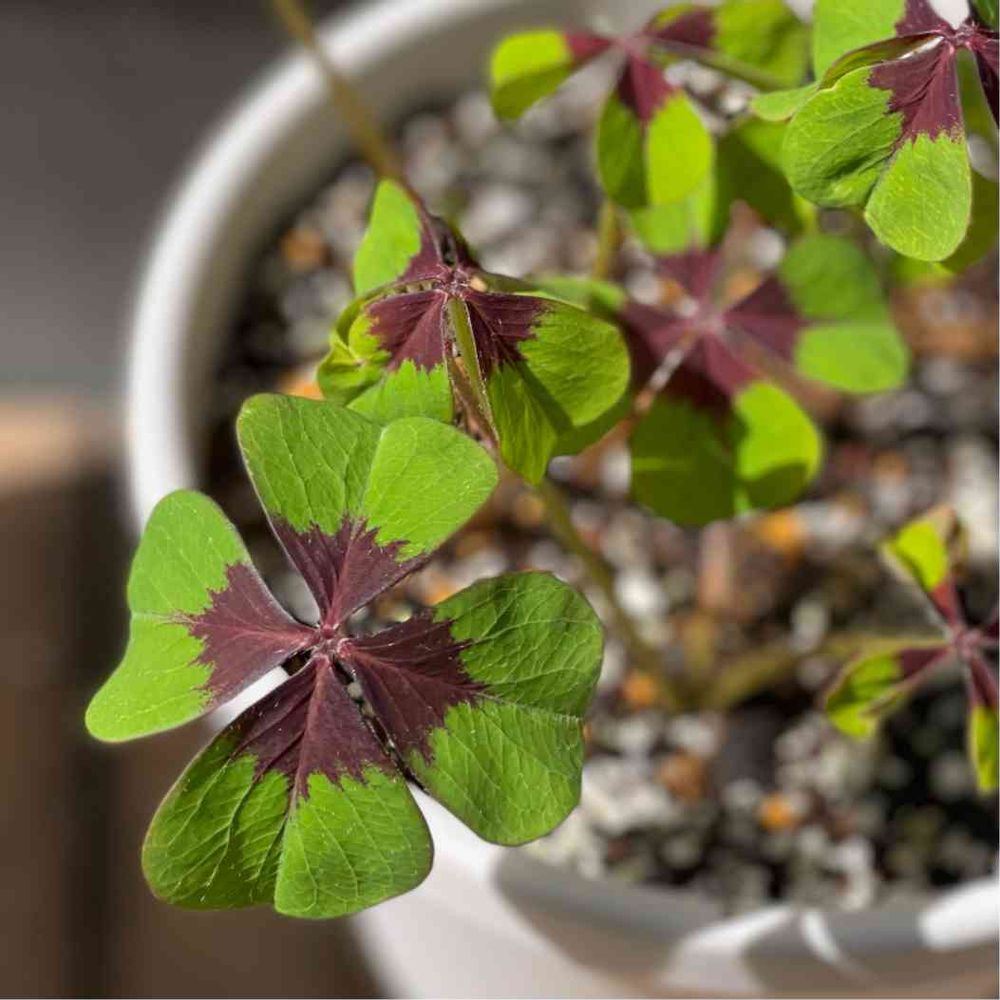 オキザリスってこんなだったっけ?と思い調べたら、オキザリスの仲間のラッキークローバーというものらしいです🍀