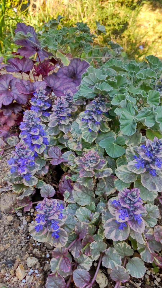 アジュガ·バーガンディグローの花が葉色となんとも言えないハーモニー😍🎶