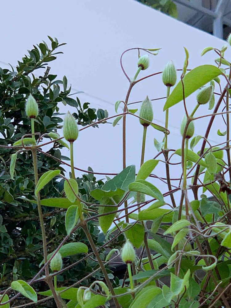 ひっそりとクレマチスの蕾が立ち上がっていました🌿テッセンの呼び名の方が馴染んでますが😃