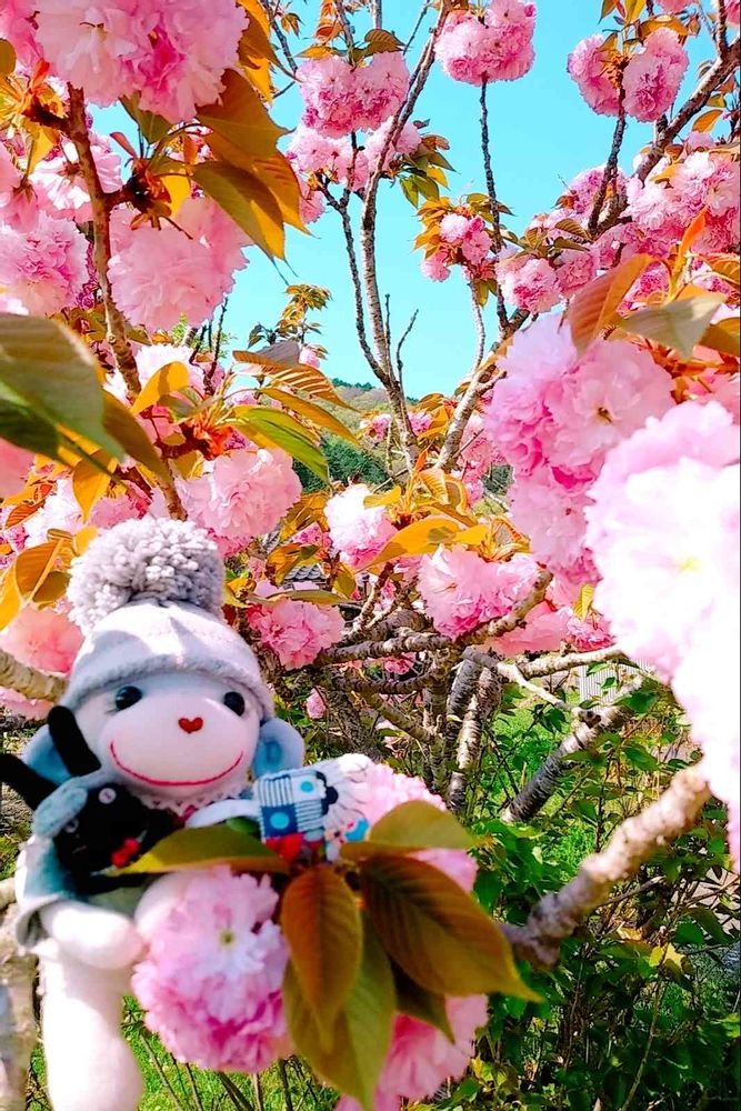 かわいい八重桜にかわいいソクモンちゃんが映えていますね💕💕