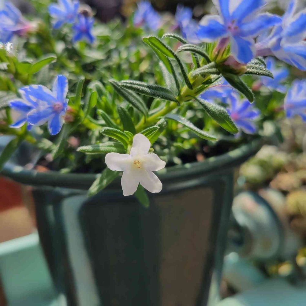 青い花の中に白い花が