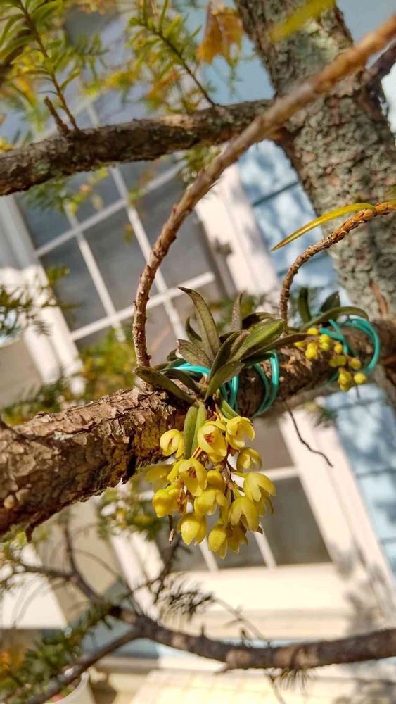 でもこれは前から着生させてるのじゃなくて、ちょっと前にもうすぐ咲きそうなのを知り合いに貰ってくっつけたのだから、咲いて当然なんだけどね😅
