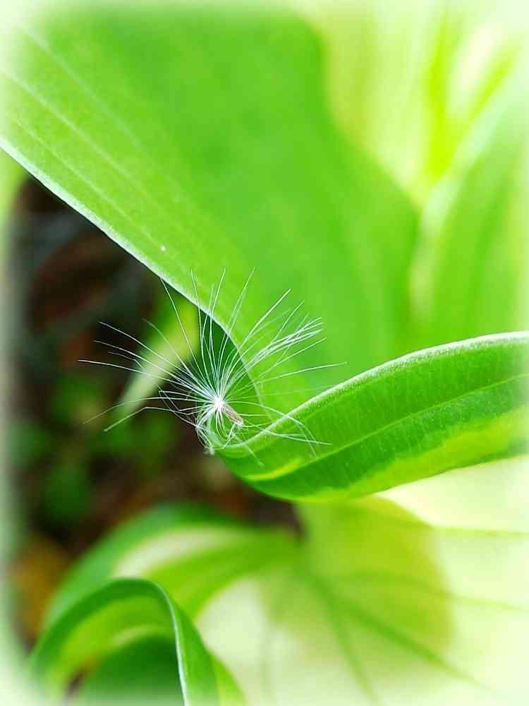 擬宝珠の葉に引っ掛かっていた わた毛…