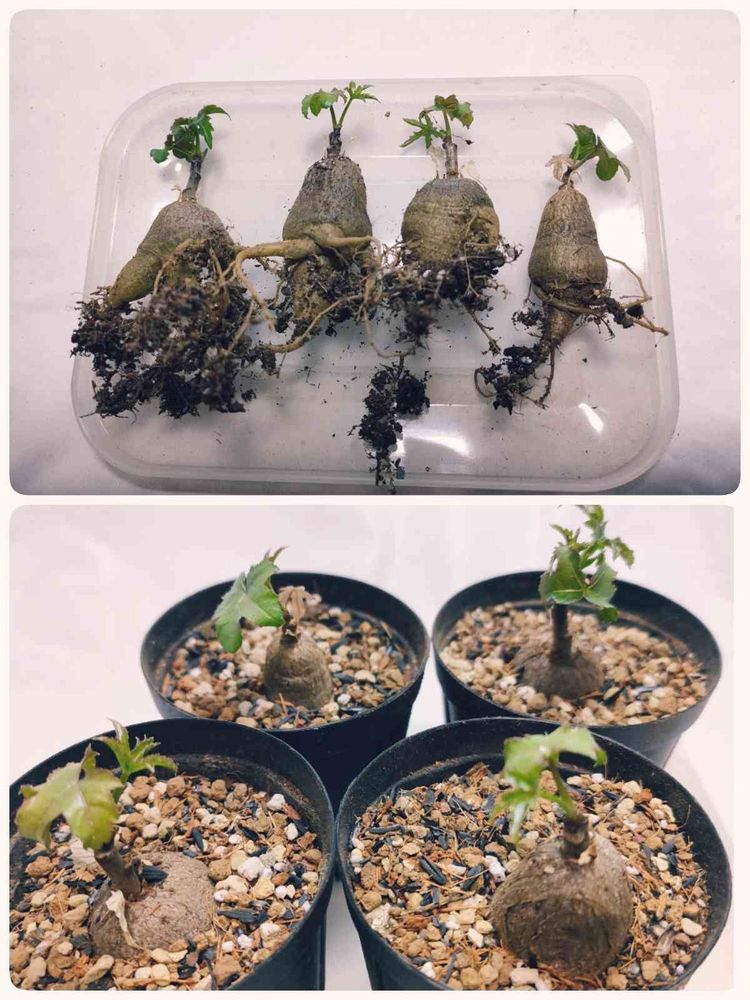 葉が出始めたので、植え替えると、まん丸のいい塊根してました😁