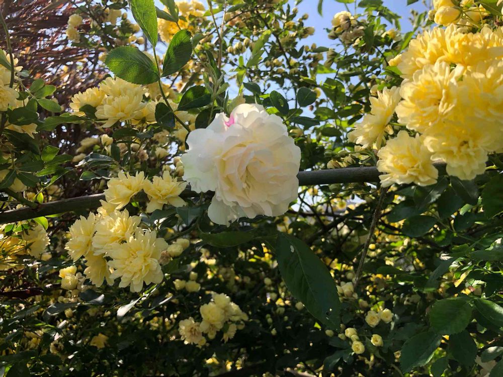 モッコウバラと交差しちゃって、剪定が上手くできてないのよ💦