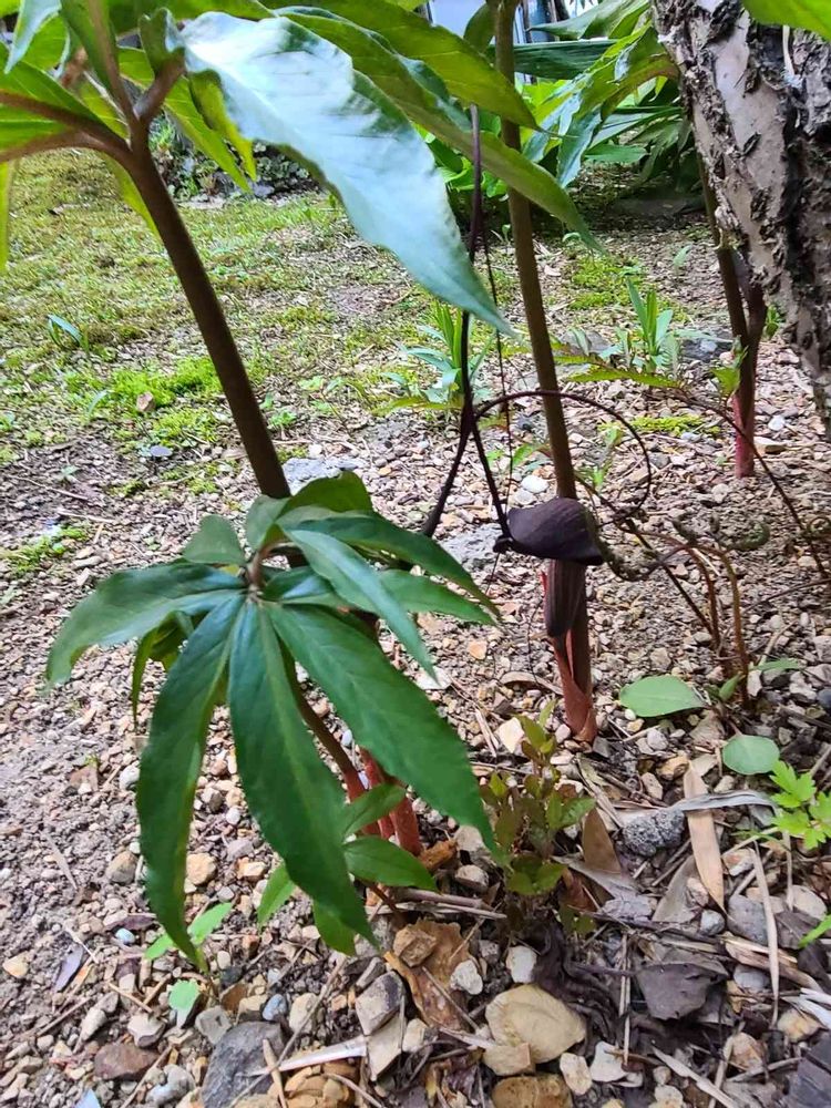 かねごんさんのお庭は、本当にステキですね‼️苔も見事だし、地面の感じがちゃんと日本庭園‼️そこにぴょこんとウラシマソウ😍💘