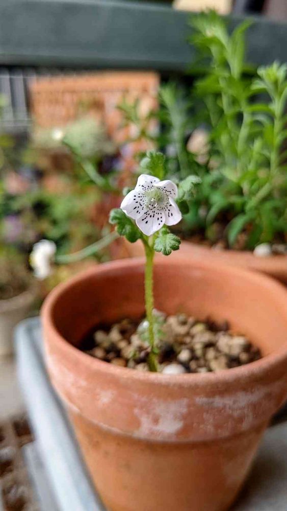 ネモフィラ スノーストーム咲きました(人*´∀`)。*゚+