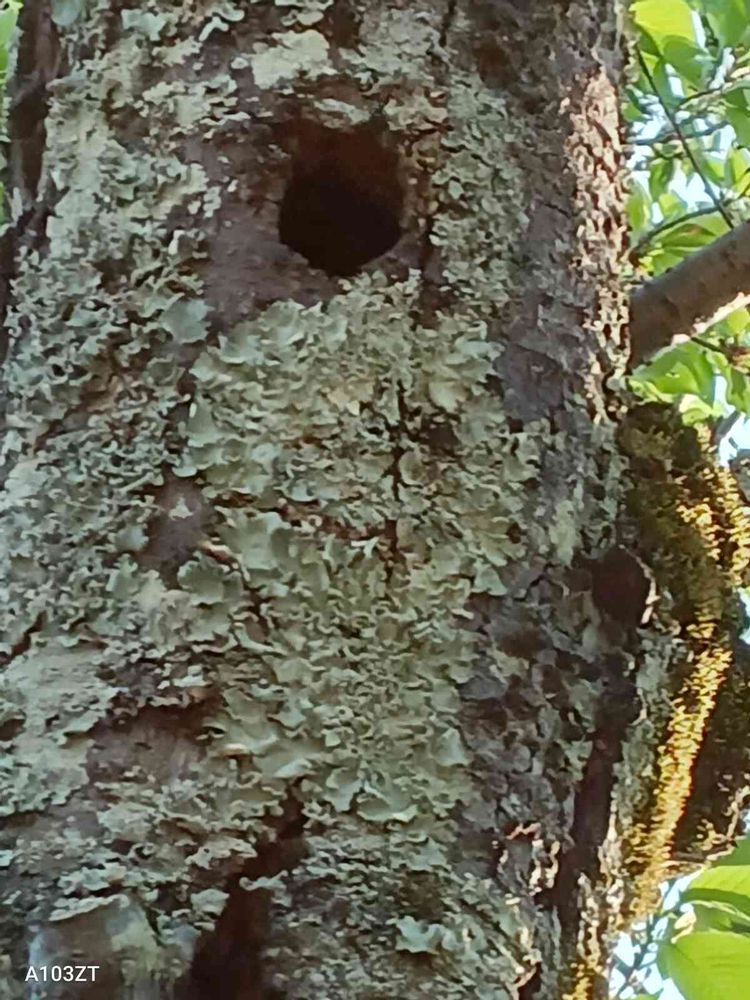 コゲラが穴から、顔出していたので、📷のシャッター押したら、同時に巣立ちをして、しまいました。