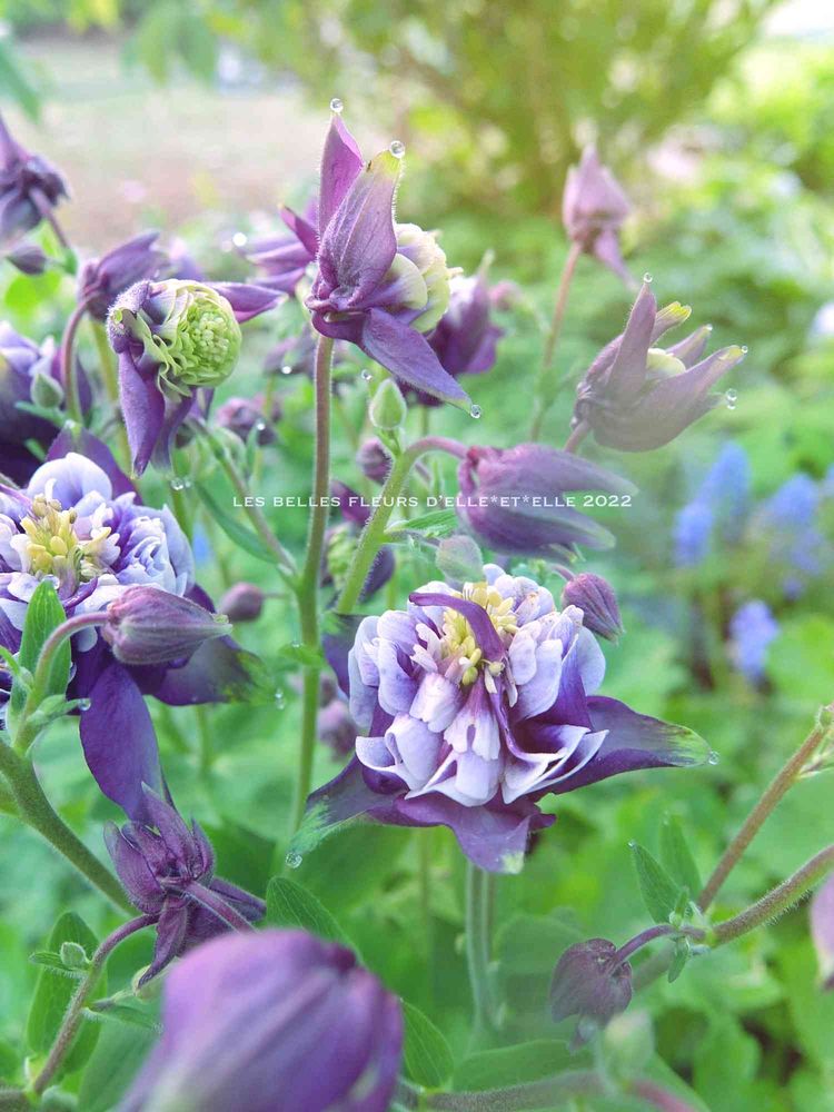 写真は朝露がピアスみたいにちょこんとついてるオダマキ・ウィンキーダブル•*¨*•.¸¸☆