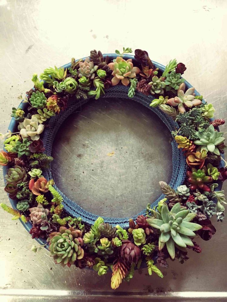 ファンヒーターいれてあったかい部屋でちまちまとザルリースに寄せ植えしました^_^