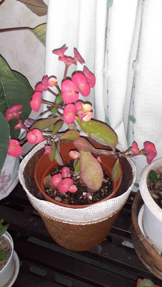 暫く外に置いていたので日の光を浴びて花が真っ赤に😃