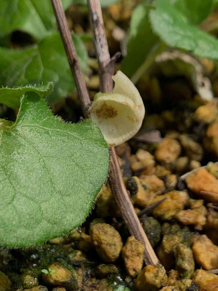 カンアオイ属は、蝶々の食草なんだって🦋 だから、葉っぱは食べられますけど、お花は何でかしら⁉️虫達も好きずきがあるのね⁈😅