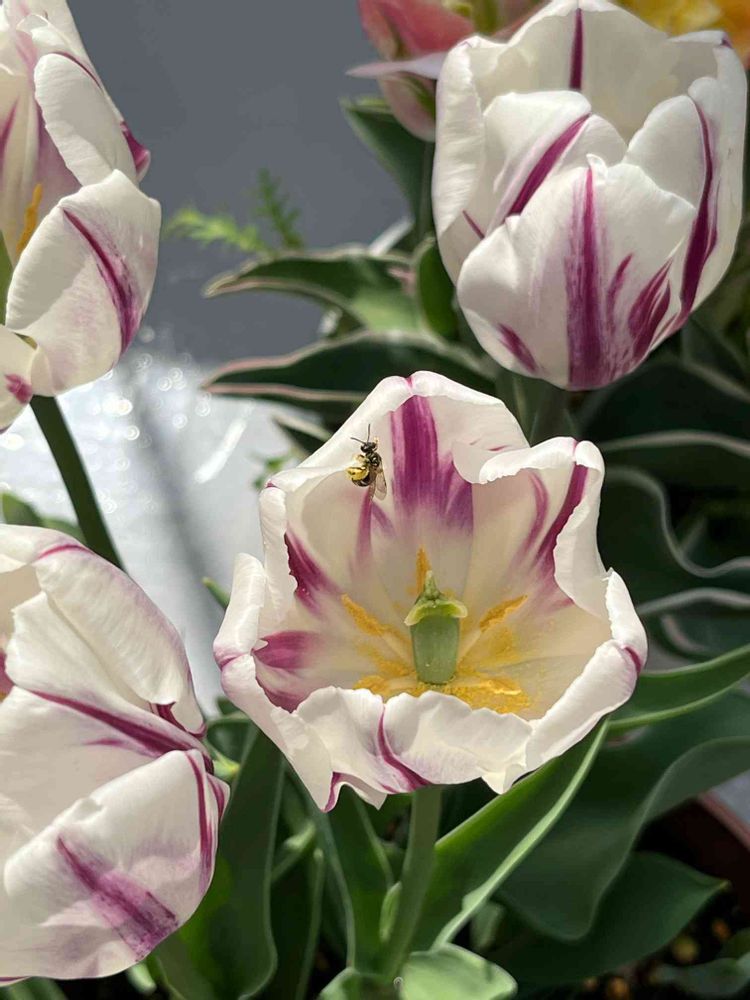 小さな蜂🐝⋆゜の両足にびっしりの花粉✨