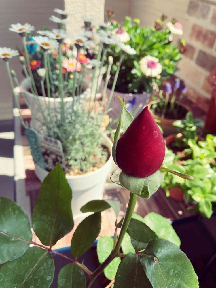 幸せ〜❤️ 🌹の蕾 明日にでもちょっと開きそう🙆♀️早く見たーい🌹🌹🎶🎶