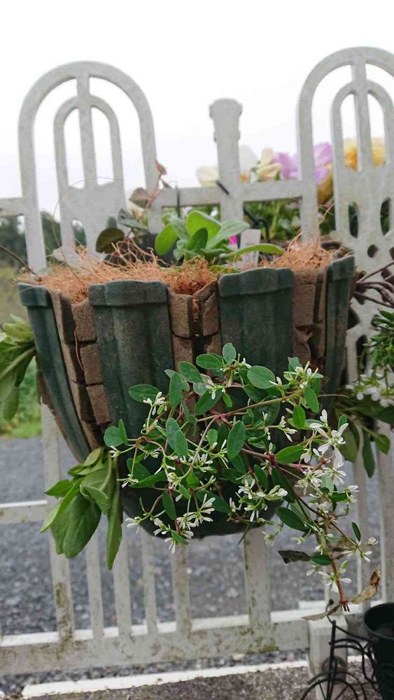 「夏の暑さや雨にも負けない!!」って事なので、将来を見越してハンギングを作ったので、隙間だらけです。